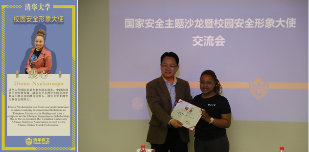 從在校學(xué)生和校友中選擇具有一定影響力的同學(xué),讓他們擔(dān)任校園安全形象大使,發(fā)揮他們自身“領(lǐng)袖人物”的引領(lǐng)作用,吸引同學(xué)們關(guān)注校園安全,這是保衛(wèi)處近年來持續(xù)在做的事情。來自津巴布韋的裴心(Diana Nyakatsapa)是首位被推選為校園安全形象大使的國際學(xué)生,她用自己燦爛的笑容溫暖著每一個人。平日里,裴心代表國際學(xué)生參加校園安全活動,將國際學(xué)生需要的安全信息和資源傳遞給每一個人。她表示:“參與保衛(wèi)處的工作是一次神奇的經(jīng)歷,是拓展視野的絕佳機會。在這些工作中,我不僅了解了校園的安全措施,還結(jié)識了很多優(yōu)秀的朋友,發(fā)展了自己的領(lǐng)導(dǎo)力。”