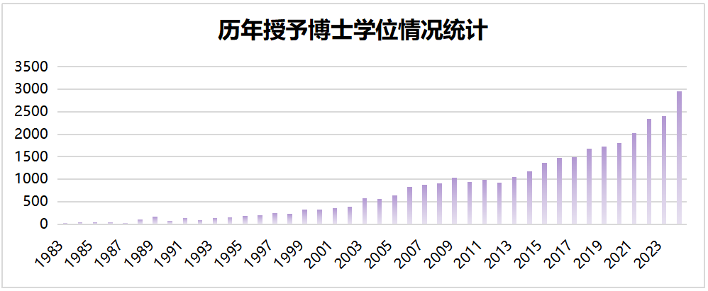 自1981年國家建立學位制度至2024年,清華大學已授予碩士和博士學位共計151976人,其中博士學位32914人,碩士學位119062人。(統計數據中不含北京協和醫學院-清華大學醫學部)。